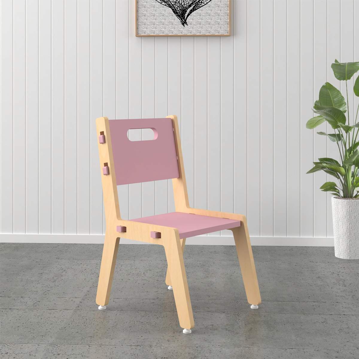 This chair is available in four different colours- Natural, White, Green and Pink.