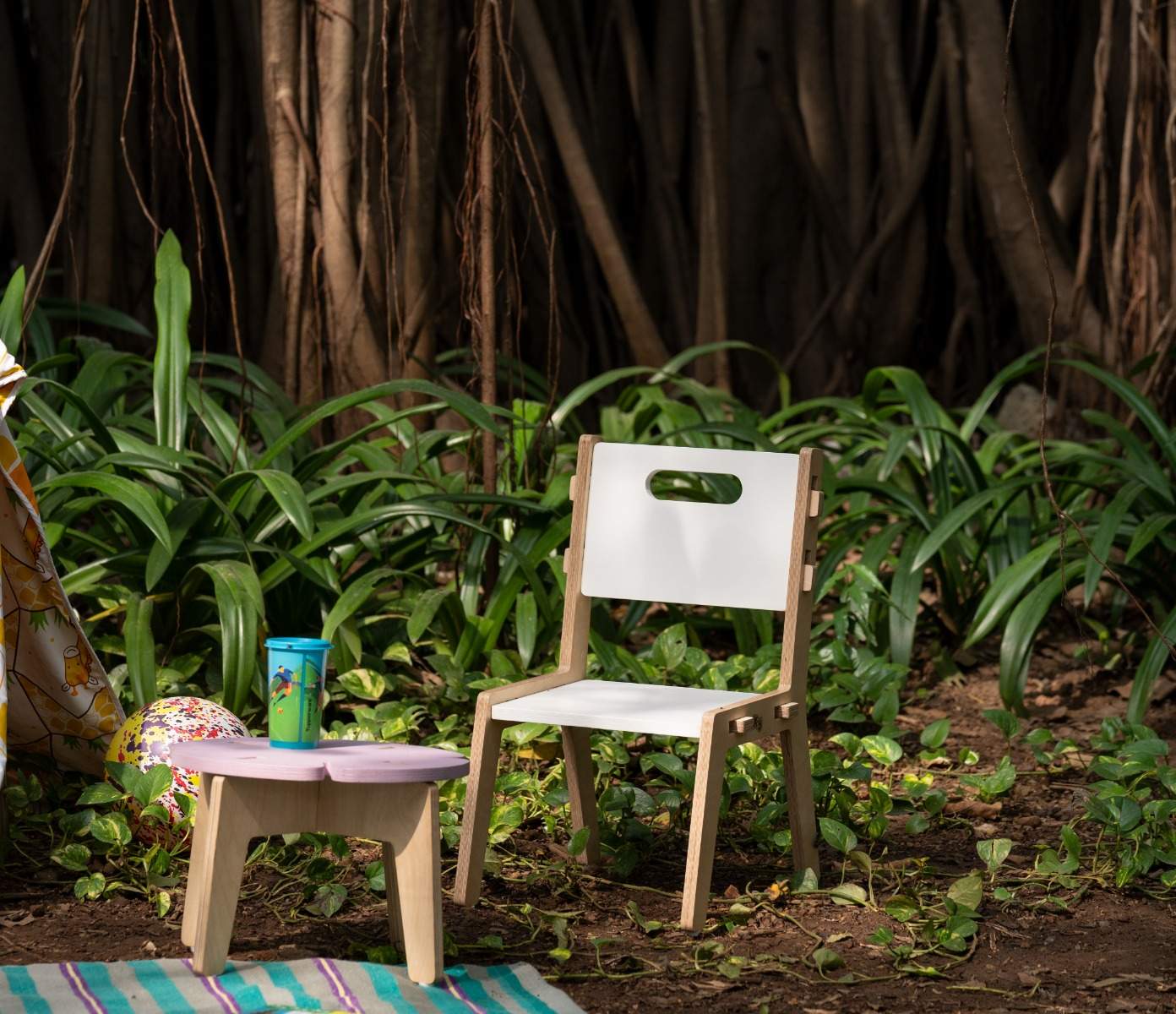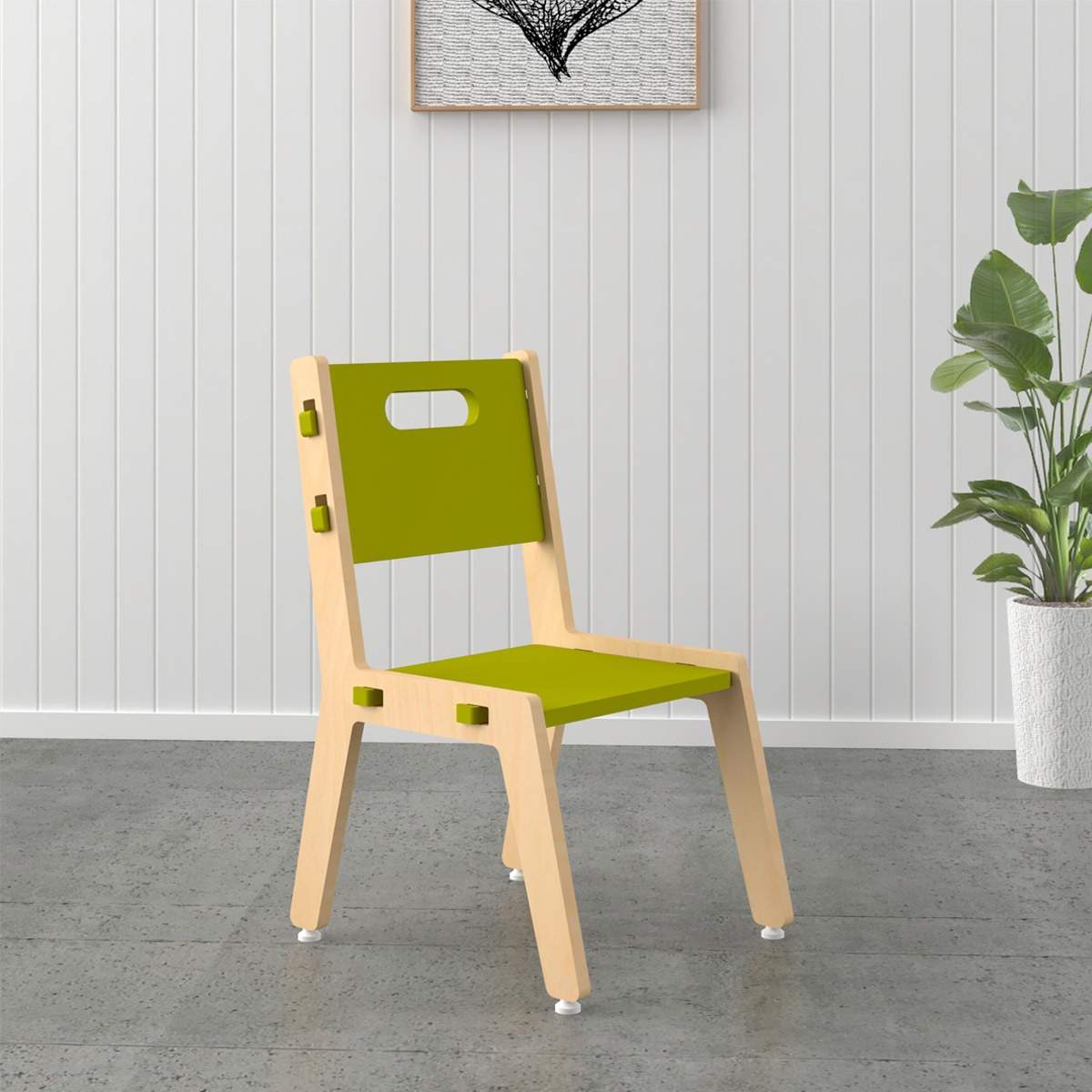 - : FG220918 Material : Marine Grade, FSC certified Birch plywood Recommended Age : 2 - 6 years Assembled Dimensions : 13 X 15 X 22.4 in ( L X W X H ) Seat Height : 10" & 12" Product Features: - Flat Pack - Non toxic, no VOC paint & polish - Interlocking joinery technique for easy to assemble & dismantle - Light Weight - Round corners for safety - Care: Easy to clean with a damp cloth.
